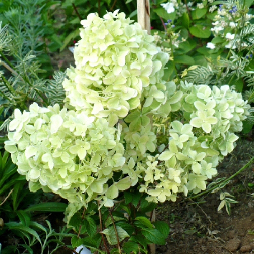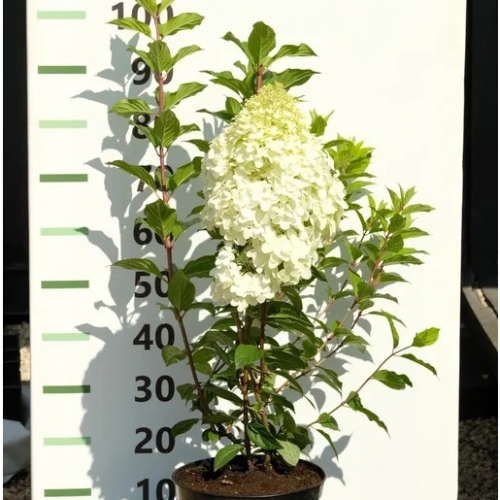 Куст вертикальной, слегка расклешенной формы, до 1,5м высотой. Соцветия размером 20-25 см, плотные метелки закруглённые, из стерильных цветков. Цветки в начале цветения желто-зеленой и золотистой окраски, затем чисто-белые и к концу цветения слегка розовеют. Цветение раннее, обильное и продолжительное. Неприхотлива. Рекомендуется сильная обрезка весной до начала сокодвижения. Не любит полива по листьям и цветкам.