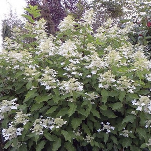 Кустарник с симметричной кроной до 1,8м высотой. Куст не разваливается и не требует подвязки. Соцветие рыхлое длиной 15-20 см, конусовидной формы, состоит из стерильных и фертильных цветков. Стерильные цветки расположены в соцветии неравномерно, крупные, ослепительно белого цвета. Неприхотлива. Рекомендуется сильная обрезка весной до начала сокодвижения. Не любит полива по листьям и цветкам.