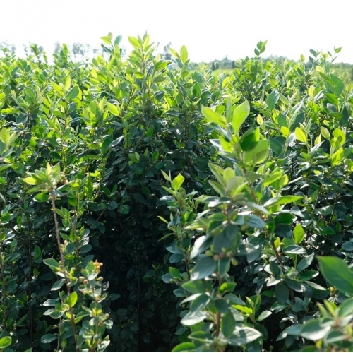 Густооблиственный пряморастущий кустарник с длинными, тонкими побегами, разрастающийся до ширины 2,5 м. Листья эллиптические, кожистые, мясистые, с легким восковым налетом. Лист темно-зелёный, осенью приобретают очень красивый бордовый цвет. Цветки мелкие, бело-розовые. Плоды среднего размера, черные округлой формы. Неприхотлив. Отлично переносит стрижку. Идеален для живых изгородей.