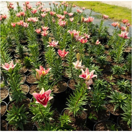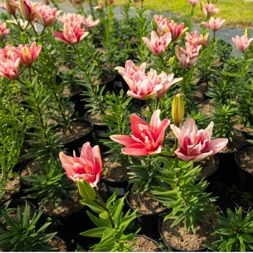 Азиатская махровая. Крепкие поьеги до 110см, до 6 бутонов, цветки крупные, махровые, без пыльников, лепестки темно-розовые. Без запаха.