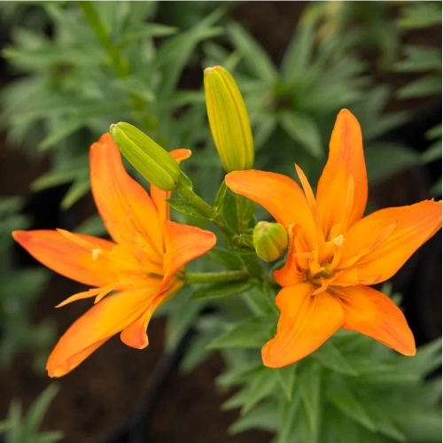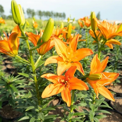 ЛА махровая. Крепкая лилия до 100 см, цветок до 15 см, махровый, насыщенного оранжевого цвета, без пыльников. Без запаха.