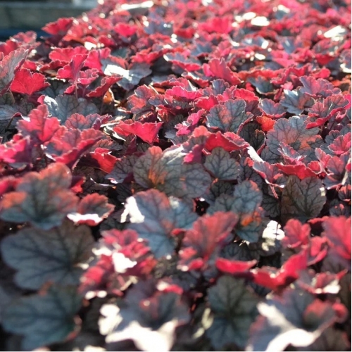 Декоративный куст с листьями необычного металлического оттенка на округлых бордовых листьях с темными прожилками. Разрастается медленно. Цветки кремовые. На солнце требуется увеличить полив. На зиму рекомендовано мульчирование, чтобы избежать выпревания.