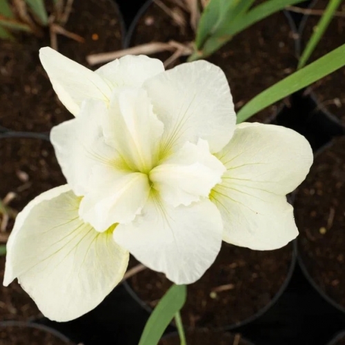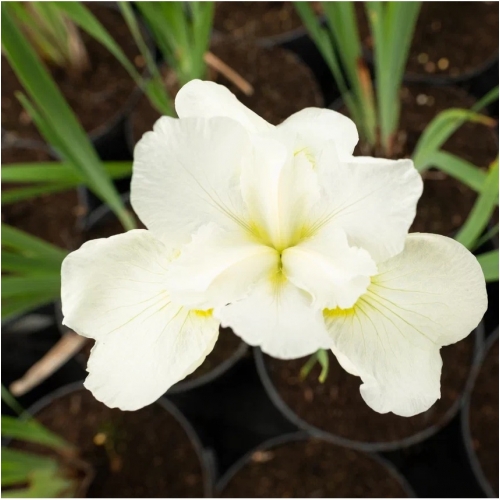 Мощный куст высотой до 90 см. Цветки 12 см, слегка гофрированные, чисто-белые, с белыми сигналами. Один из лучших белых сибирскийх ирисов!