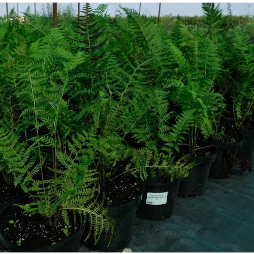 Папоротник. Образует компактный пучок. Ажурные крупные красноватые изящно-ромбовидные перистые вайи на темно-красных черешках. Предпочитает расти в полутени и тени, на открытых местах требует обильного увлажнения. Зимостойкость полная. Может давать самосев.