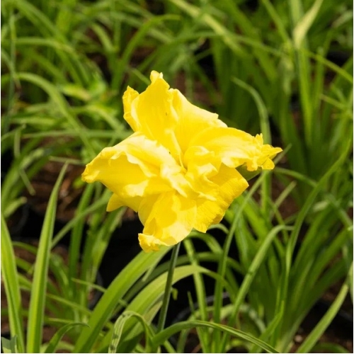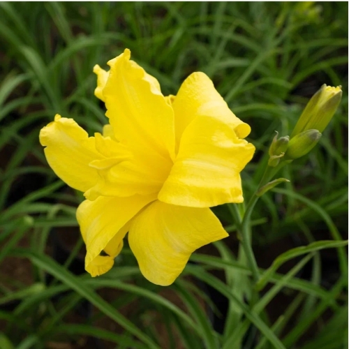 Цветок до 15 см, нежно-желтый, с зеленым горлом, махровый. Цветение повторное, дневное.